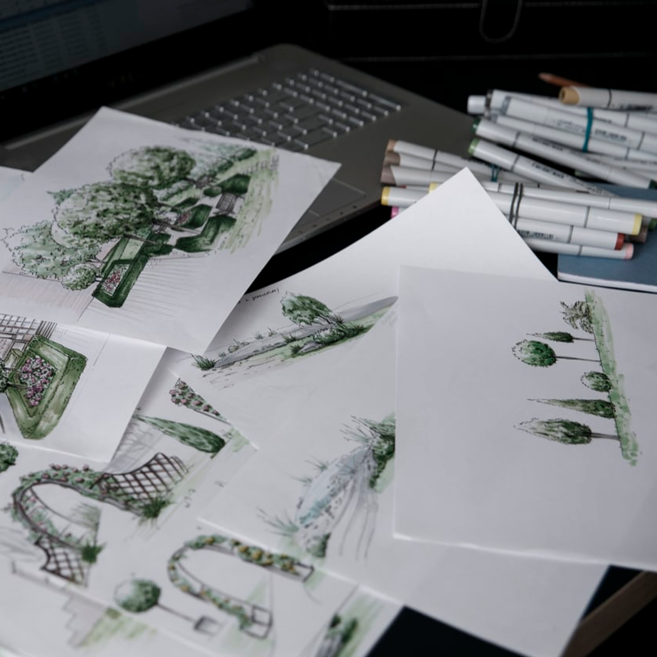 Таким составом мы готовы реализовать ваш сад и перенести его с бумаги в жизнь, лишив вас лишних головных болей, контролируя весь процесс от начала и до самого последнего штриха.